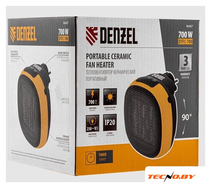 тепловентилятор, керамический, термостат, управление механическое, площадь обогрева 18 м2