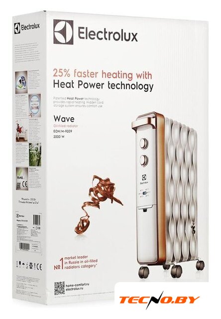 масляный радиатор, 2000 Вт, 9 секций, термостат, управление механическое, площадь обогрева 25 м2