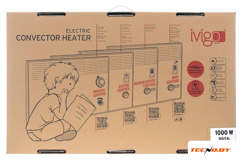 конвектор, монолитный (x-образный), 2000 Вт, термостат, настенный монтаж, управление электронное, площадь обогрева 25 м2, влагозащищенный корпус