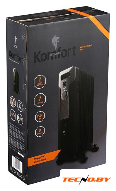 масляный радиатор, 1500 Вт, термостат, управление механическое, площадь обогрева 15 м2