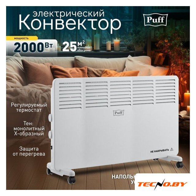 конвектор, 2000 Вт, термостат, возможность крепления на стену, управление механическое