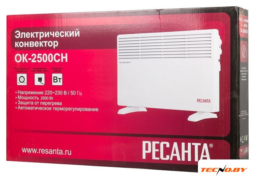 конвектор, 500 Вт, термостат, крепление на стену, управление механическое