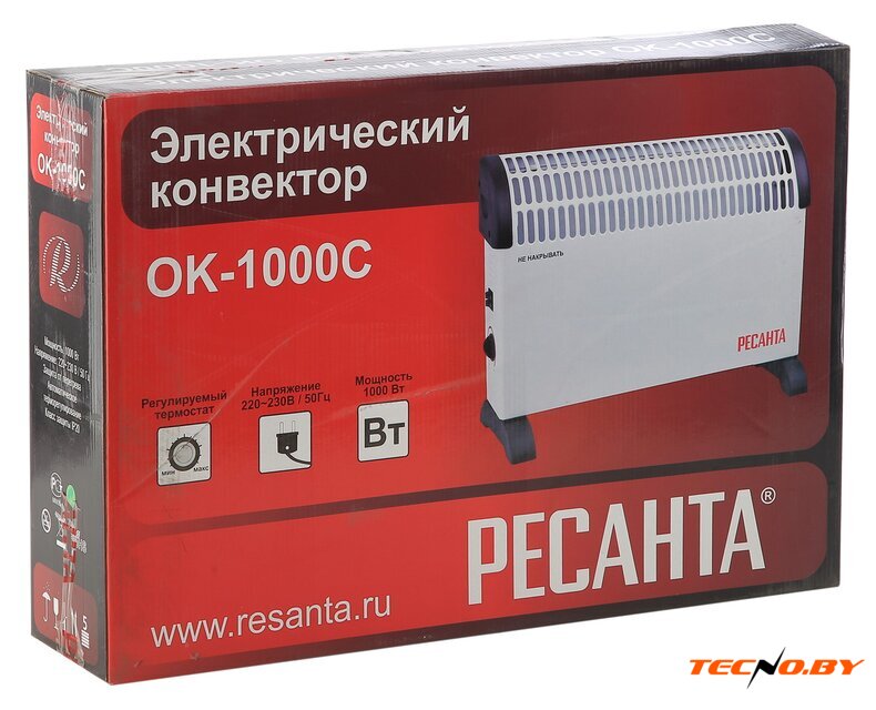 конвектор, 1000 Вт, термостат, крепление на стену, управление механическое