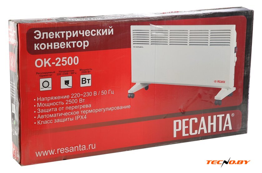 конвектор, 1500 Вт, термостат, крепление на стену, управление механическое