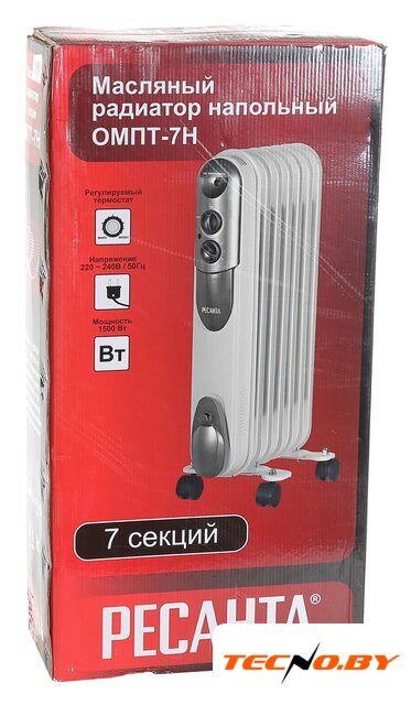 масляный радиатор, 1500 Вт, 7 секций, термостат, управление механическое