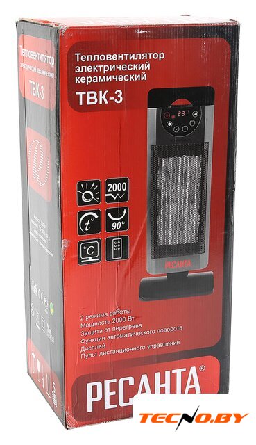 тепловентилятор, керамический, 2000 Вт, термостат, управление механическое, площадь обогрева 25 м2