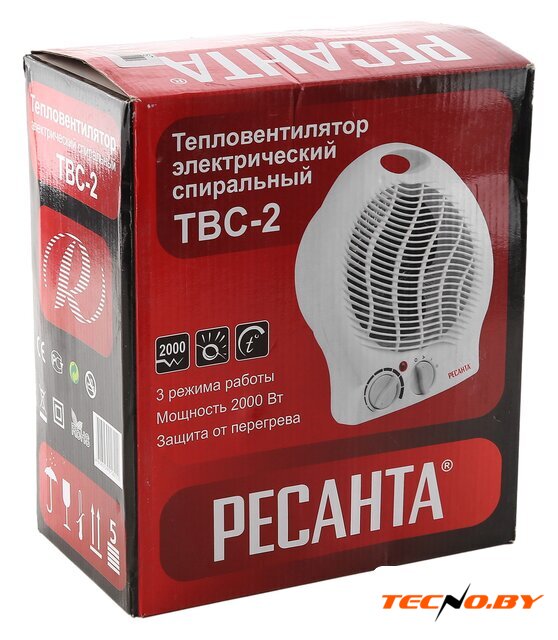 тепловентилятор, спиральный, 2000 Вт, термостат, управление механическое