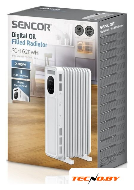 масляный радиатор, 2500 Вт, 11 секций, термостат, управление механическое
