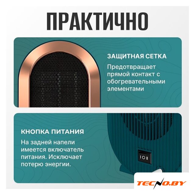 тепловентилятор, игольчатый (стич), 1200 Вт, управление механическое, площадь обогрева 30 м2