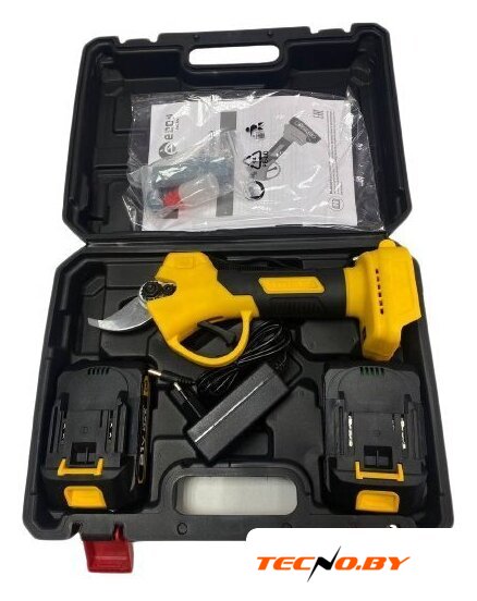 | Комплектация | - Секатор аккумуляторный - Аккумуляторная батарея 2 шт.- Зарядное устройство - Режущее лезвие (подвижное)- Набор ключей- Руководство по эксплуатации - Кейс |