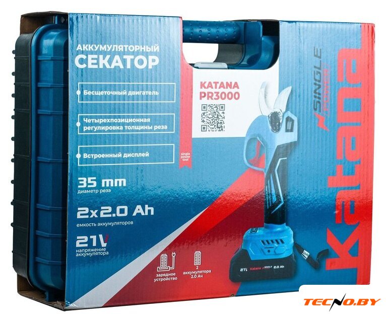 | Комплектация | -Секатор, -Зарядное устройство, -Руководство по эксплуатации с гарантийным талоном, -Кейс, -Аккумуляторный блок (2 шт) |