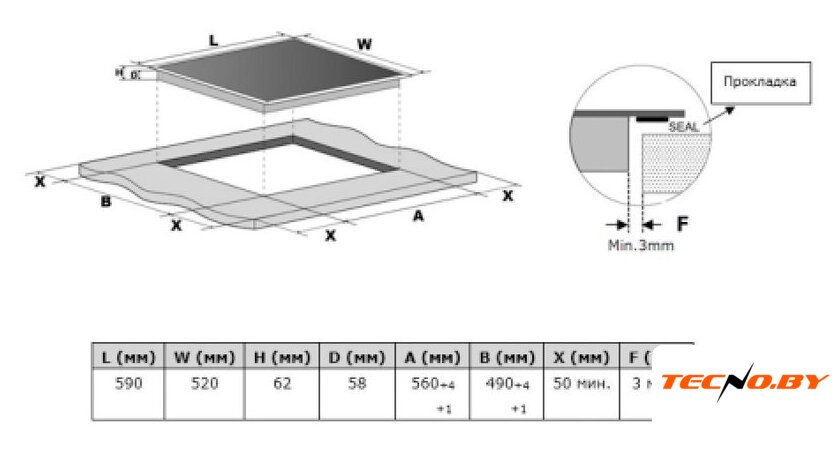 Ширина панели составляет всего 59 см, а глубина — 52 см, что делает ее идеальной для современных кухонь с ограниченным пространством. Она изготовлена для независимой установки, а размеры ниши для встраивания (56 см в ширину и 49 см в глубину) делают монтаж проще и доступнее как для профессионалов, так и для домашних мастеров.
