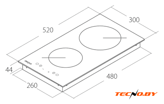 HiLight на 2 конфорки, cтеклокерамика, мощность: 3000 Вт, автоматика закипания, независимая установка, размеры (ШхГ): 30x52 см