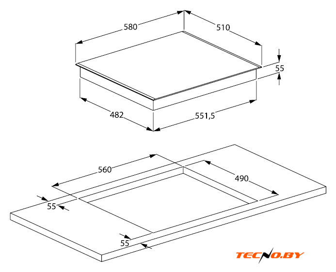 С точки зрения установки, варочная панель является независимой, что даёт вам свободу в определении её расположения. С шириной в 58 см и глубиной в 51 см, она идеально подойдёт для стандартизированных кухонных ниш 56x49 см. Вес панели составляет всего 8.95 кг, что облегчает процесс монтажа.