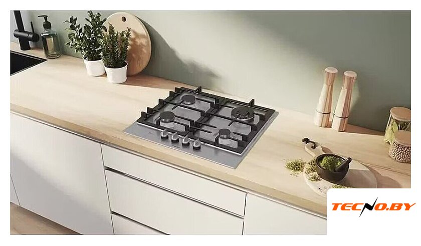 газовая на 4 конфорки, нержавеющая сталь, мощность: 8550 Вт, автоматический электроподжиг, газ-контроль, решетки: чугун, независимая установка, размеры (ШхГ): 59.5x51 см