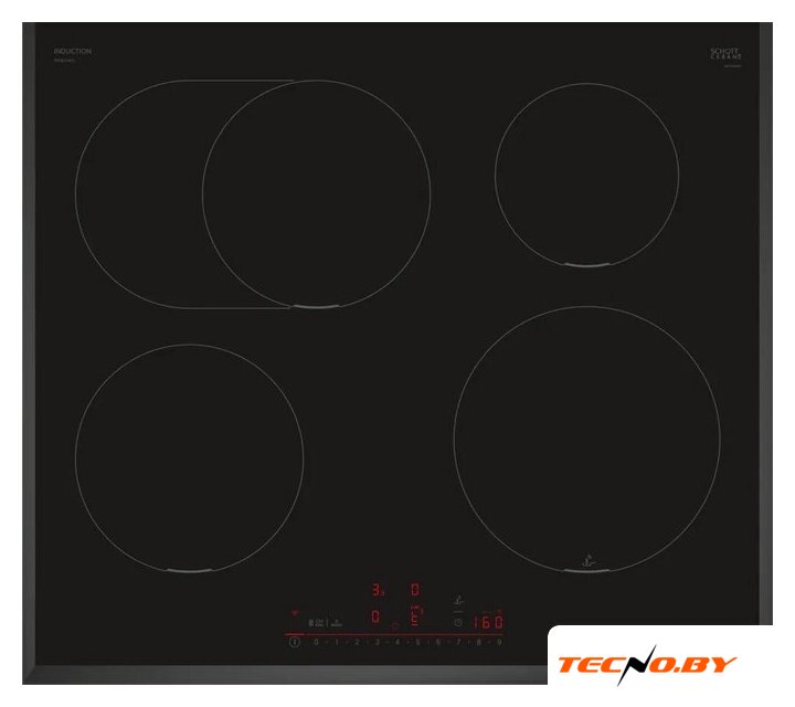индукционная на 4 конфорки, cтеклокерамика, независимая установка, размеры (ШхГ): 59x52 см