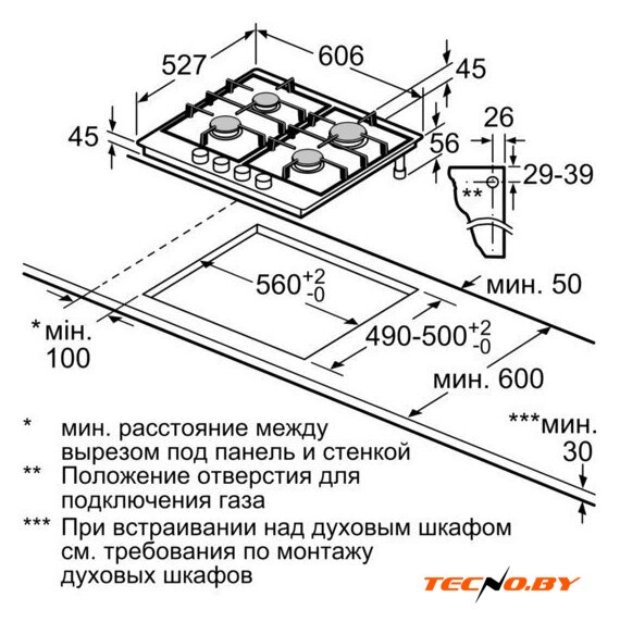 газовая на 4 конфорки, закаленное стекло, мощность: 7500 Вт, автоматический электроподжиг, газ-контроль, решетки: чугун, независимая установка, размеры (ШхГ): 59x52 см