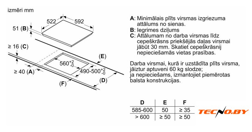 Варочная панель имеет независимую установку, что означает больше свободы в подборе места на кухне. Она идеально встраивается в нишу с шириной 56 см и глубиной 49-50 см. Габариты самой панели составляют 59.2 см в ширину и 52.2 см в глубину. Это делает её подходящей для большинства кухонных пространств, позволяя вам организовать своё рабочее место наиболее эффективно.