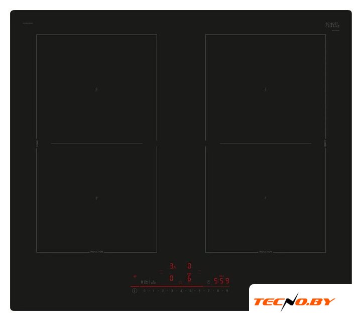 индукционная на 4 конфорки, cтеклокерамика, мощность: 3000 Вт, независимая установка, размеры (ШхГ): 59.2x52.2 см