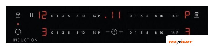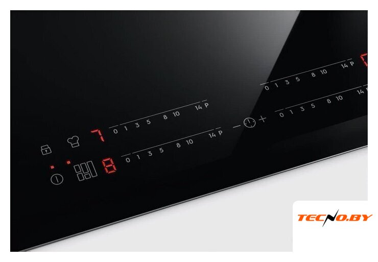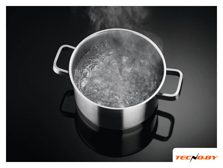 Панель оснащена четырьмя индукционными конфорками разной мощности и размеров, что подходит для посуды диаметром от 125 до 390 мм. Индукционные конфорки включают в себя переднюю левую (2300/3700 Вт, 180 - 210 мм), левую заднюю (1800/2800 Вт, 145 - 180 мм), правую переднюю (1400/2500 Вт, 125 - 145 мм) и правую заднюю (1800/2800 Вт, 145 - 180 мм). Для быстрого закипания и нагрева предусмотрена функция Booster, которая позволяет временно увеличить мощность конфорок.