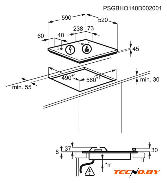 С размерами 59,5 см по ширине и 51 см по глубине, эта варочная панель прекрасно впишется даже в небольшие кухни. Для встраивания потребуется ниша шириной 56 см и глубиной 48 см, что позволяет установить панель практически в любой рабочей поверхности.