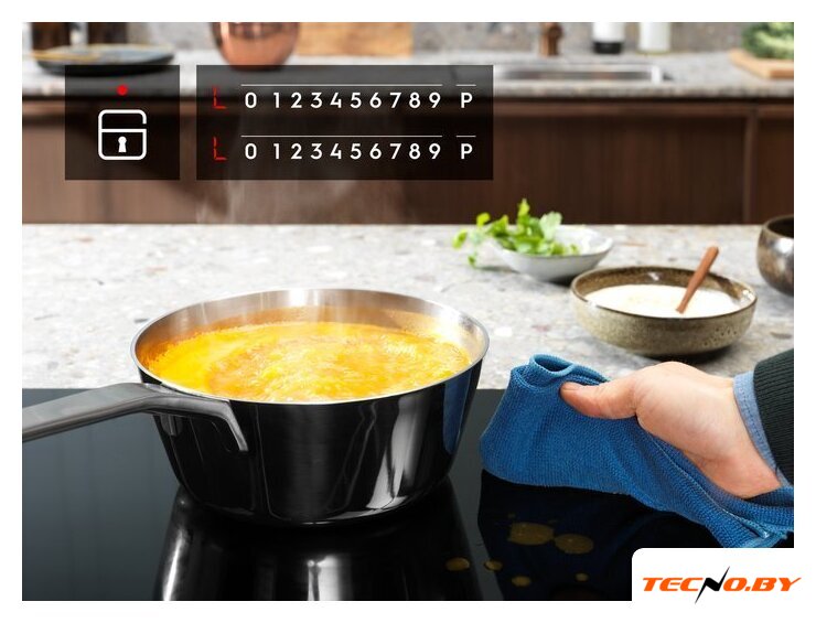 Сенсорная панель управления, расположенная спереди, позволяет легко регулировать нагрев при помощи интуитивно понятной системы сенсорных кнопок -/+. Также предусмотрена блокировка от детей, что обеспечивает дополнительную безопасность в доме, где есть маленькие дети. Индикатор остаточного тепла подскажет, когда поверхность остыла и готова к безопасному использованию или очистке.