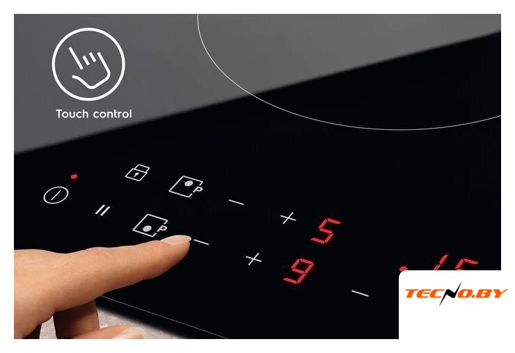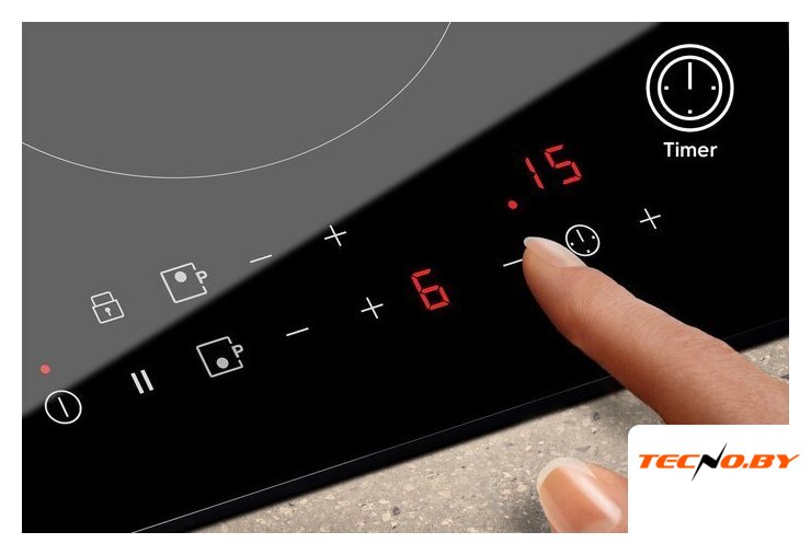 Панель оснащена простым сенсорным управлением с расположением кнопок спереди. Управление становится интуитивно-понятным благодаря кнопкам +/-. Встроенный электронный таймер позволяет точно рассчитывать время приготовления, а также контролировать его с помощью удобной индикации.