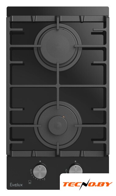 газовая на 2 конфорки, закаленное стекло, мощность: 4300 Вт, автоматический электроподжиг, газ-контроль, решетки: чугун, независимая установка