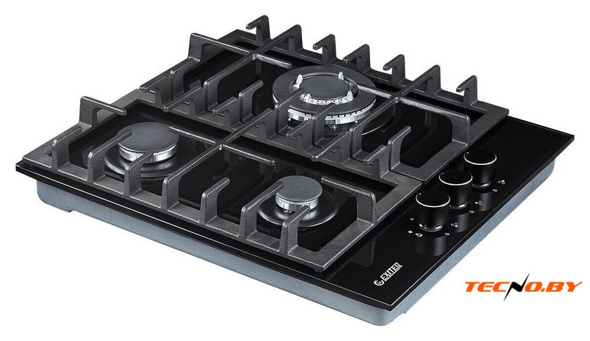 газовая на 4 конфорки, закаленное стекло, автоматический электроподжиг, газ-контроль, решетки: чугун, независимая установка, размеры (ШхГ): 63.5x52 см