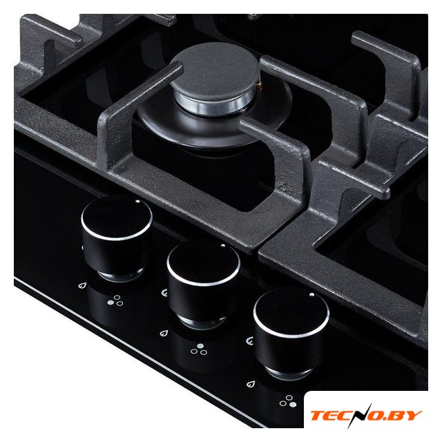 | Подробная информация о конфорках | 1 конфорка WOK с двойным рядом пламени, максимальная мощность общей панели 6.55 кВт, информация о диаметрах конфорок не указана |