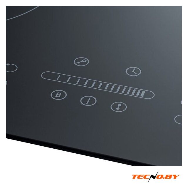 Управление поверхностью происходит с помощью удобного сенсорного слайдера, расположенного на передней части устройства. Это делает контроль за приготовлением простым и интуитивно понятным. На панели предусмотрена функция блокировки от детей и индикатор остаточного тепла, что делает ее использование безопасным для всей семьи.