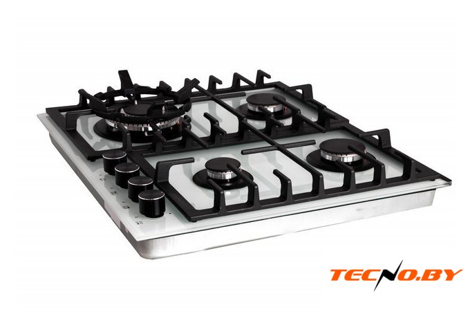 газовая на 4 конфорки, закаленное стекло, мощность: 8000 Вт, автоматический электроподжиг, газ-контроль, решетки: чугун, размеры (ШхГ): 60x52 см