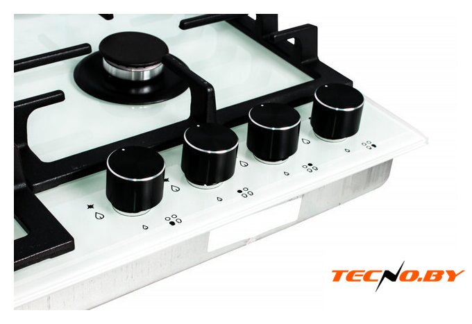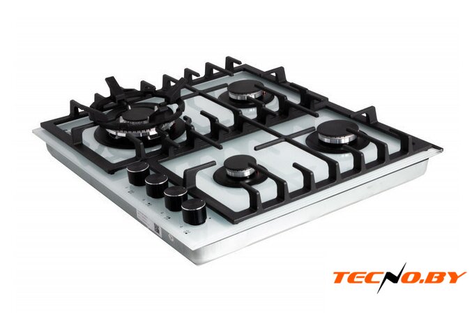 газовая на 4 конфорки, закаленное стекло, мощность: 7500 Вт, автоматический электроподжиг, газ-контроль, решетки: чугун, размеры (ШхГ): 60x51 см