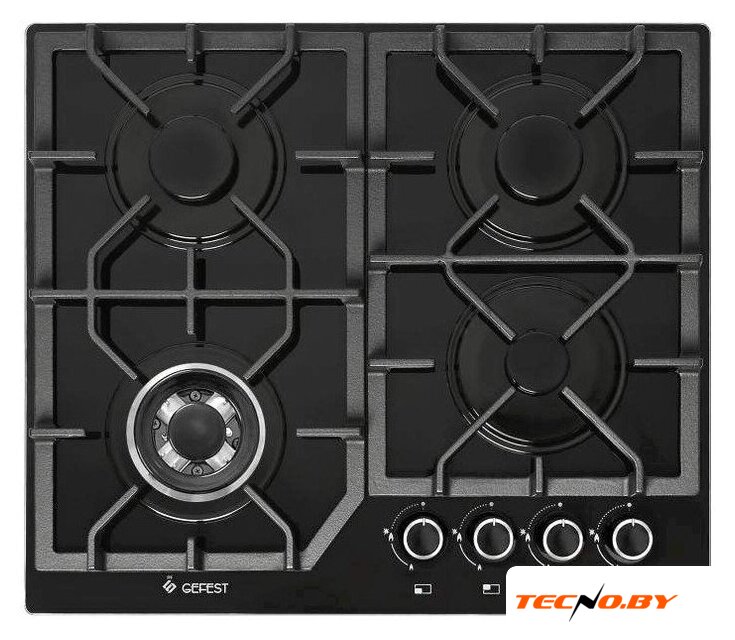 газовая на 4 конфорки, закаленное стекло, мощность: 8000 Вт, автоматический электроподжиг, газ-контроль, решетки: чугун, независимая установка, размеры (ШхГ): 58x50 см