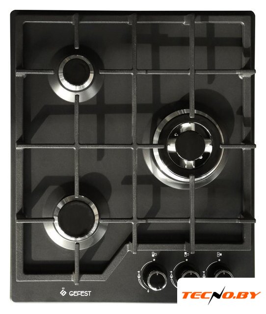 газовая на 3 конфорки, закаленное стекло, мощность: 6250 Вт, автоматический электроподжиг, газ-контроль, решетки: чугун, размеры (ШхГ): 45x51 см