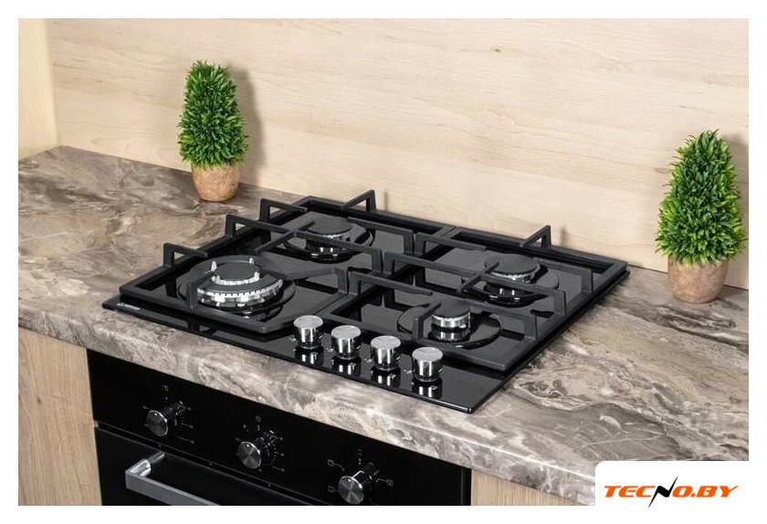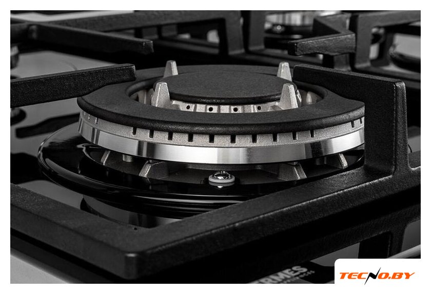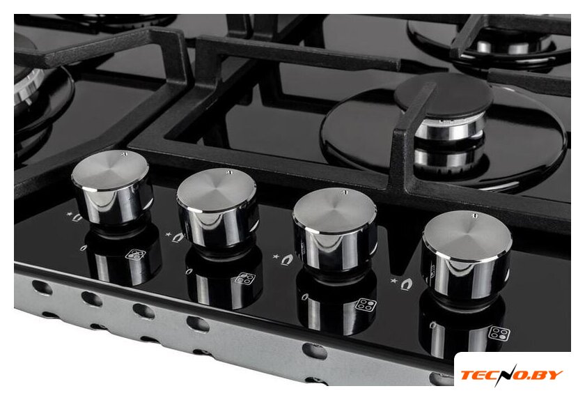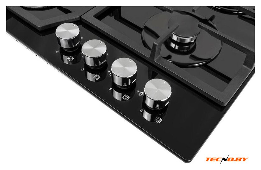 Модель оснащена автоматическим электроподжигом, что позволяет легко зажигать конфорки без использования дополнительных средств. Встроенный газ-контроль обеспечивает безопасность, автоматически отключая подачу газа при затухании пламени, что делает использование панели максимально безопасным. Кроме того, чугунные решетки гарантируют устойчивость посуды и долговечность использования.