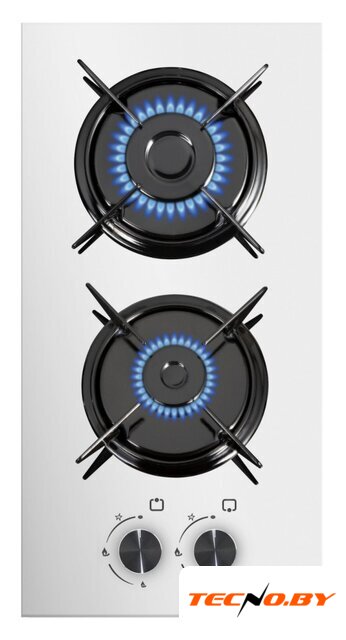 газовая на 2 конфорки, закаленное стекло, мощность: 4000 Вт, автоматический электроподжиг, газ-контроль, решетки: чугун, размеры (ШхГ): 30x52 см