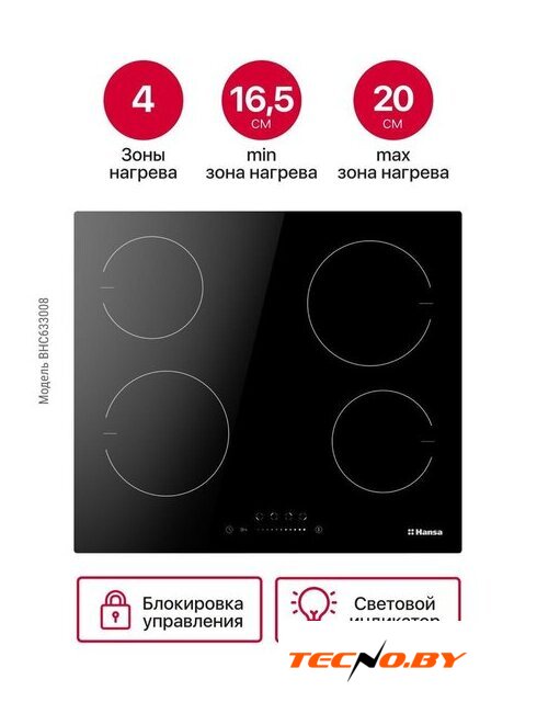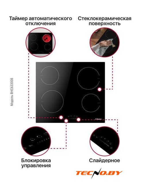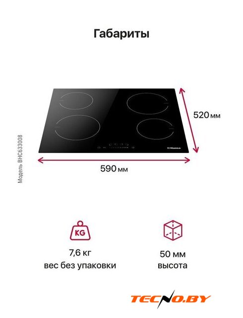 HiLight на 4 конфорки, cтеклокерамика, мощность: 6000 Вт, независимая установка, размеры (ШхГ): 58x51 см
