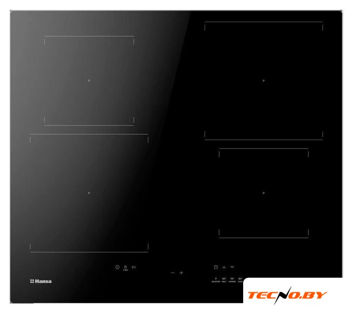 индукционная на 4 конфорки, закаленное стекло, размеры (ШхГ): 59x52 см