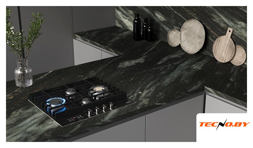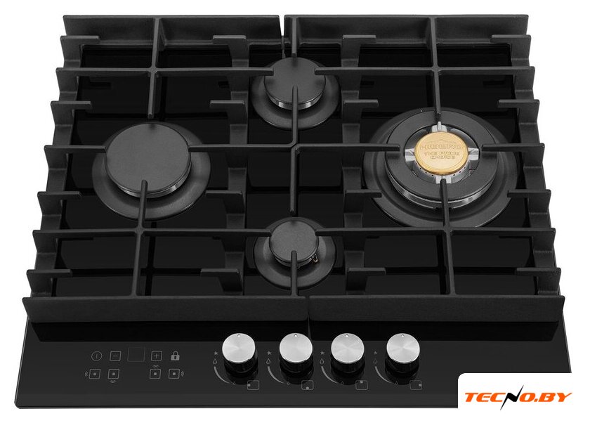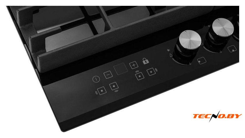 газовая на 4 конфорки, закаленное стекло, мощность: 8800 Вт, автоматический электроподжиг, газ-контроль, решетки: чугун, независимая установка, размеры (ШхГ): 58x50 см