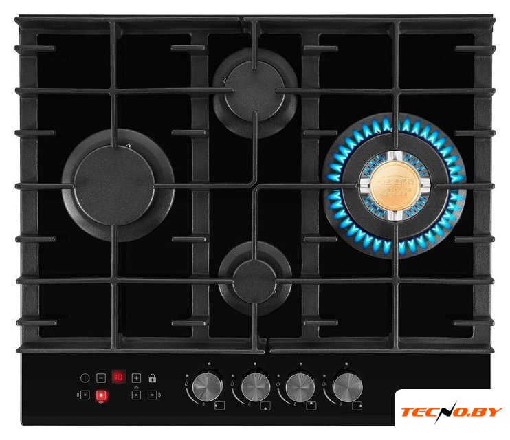 газовая на 4 конфорки, закаленное стекло, автоматический электроподжиг, газ-контроль, решетки: чугун, независимая установка, размеры (ШхГ): 58.4x51 см