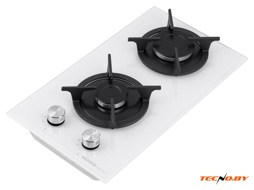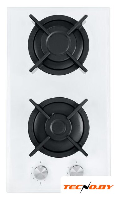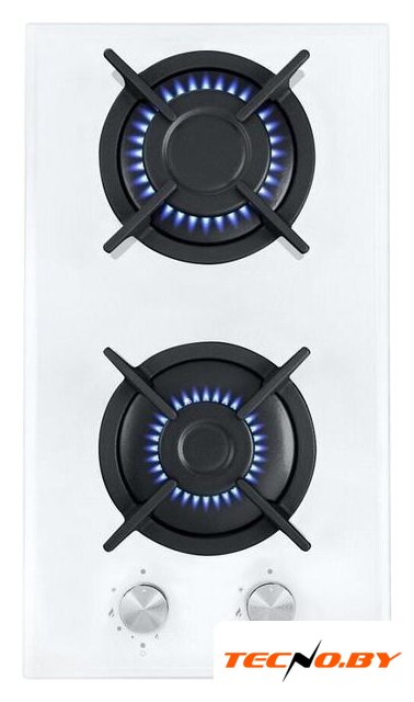 газовая на 2 конфорки, закаленное стекло, мощность: 4300 Вт, автоматический электроподжиг, газ-контроль, решетки: чугун, независимая установка