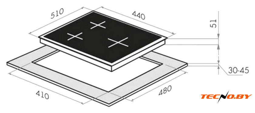 Габариты панели составляют всего 44 см в ширину и 51 см в глубину, что делает её отличным выбором для компактных кухонь. При этом размеры ниши для встраивания – 41 см в ширину и 48 см в глубину – позволяют легко интегрировать устройство в рабочую поверхность, экономя пространство.