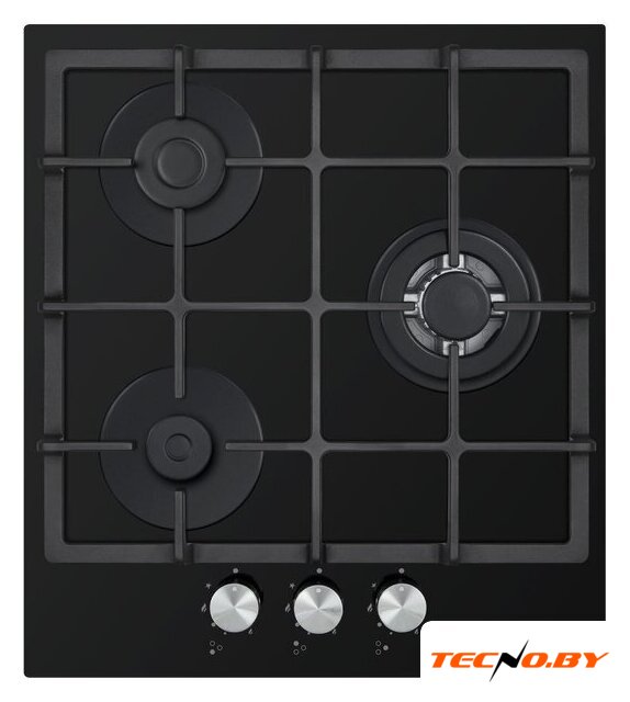 газовая на 3 конфорки, закаленное стекло, мощность: 5950 Вт, автоматический электроподжиг, газ-контроль, решетки: чугун, независимая установка, размеры (ШхГ): 45x52.5 см