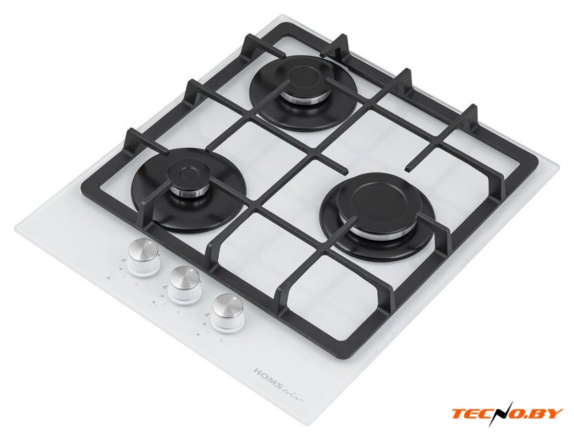 HOMSair HGG433WH оснащена тремя газовыми конфорками с разной мощностью: 2600 Вт, 1700 Вт и 1000 Вт. Это дает возможность эффективно использовать разные варианты для различных кулинарных задач. На такой панели Вы сможете не только быстро разогреть еду, но и приготовить полноценный обед или ужин для всей семьи.