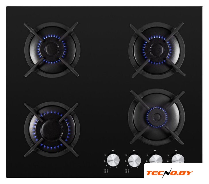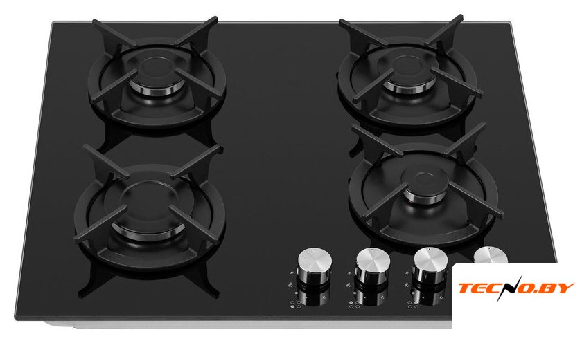 газовая на 4 конфорки, закаленное стекло, автоматический электроподжиг, газ-контроль, решетки: чугун, независимая установка, размеры (ШхГ): 63.5x52 см