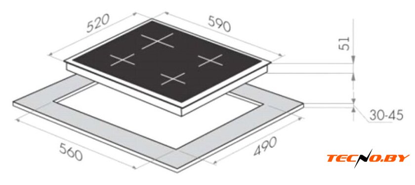 С компактной шириной 59 см и глубиной 52 см, эта варочная панель легко встраивается в большинство современных кухонь. Размеры ниши для встраивания (56 см ширина и 49 см глубина) гарантируют простоту установки и совместимость с различными кухонными решениями.
