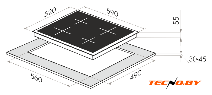 Ширина панели составляет 59 см, а глубина — 52 см, что делает её оптимальной для среднестатистической кухни. При этом она весит всего 8,2 кг, что облегчает как установку, так и эксплуатацию. Панель предназначена для независимой установки и идеально вписывается в нишу размером 56 см в ширину и 49 см в глубину, что делает её удобной для интеграции с большинством кухонных гарнитуров.