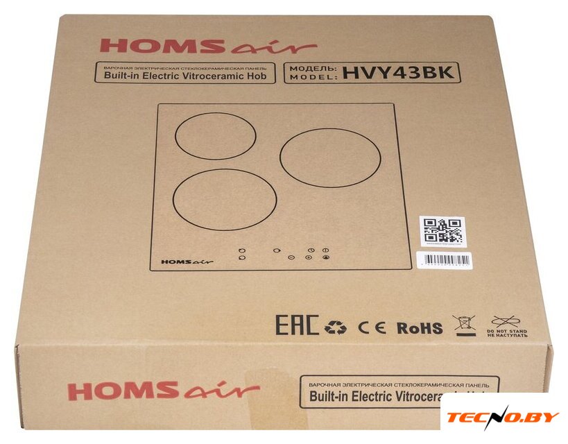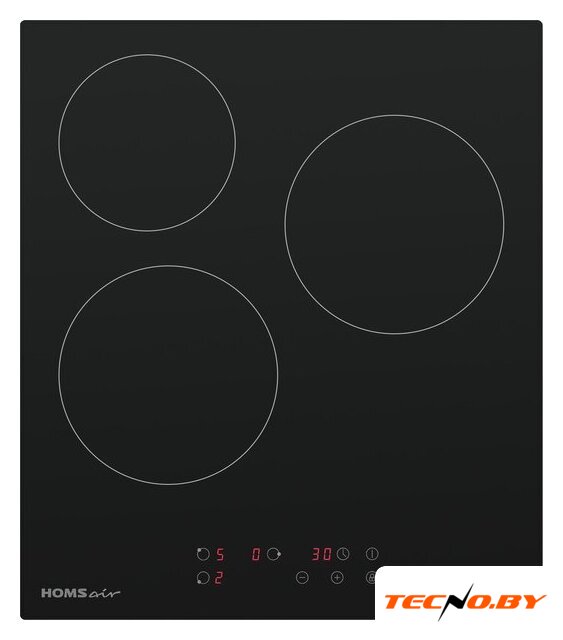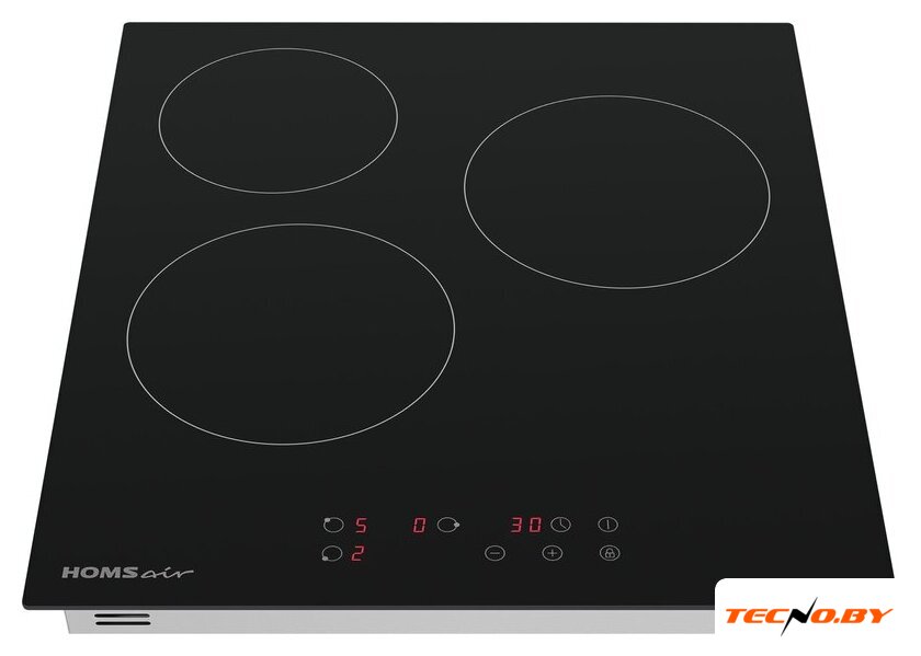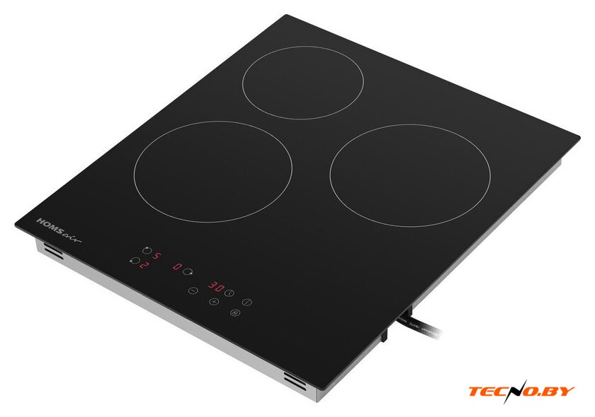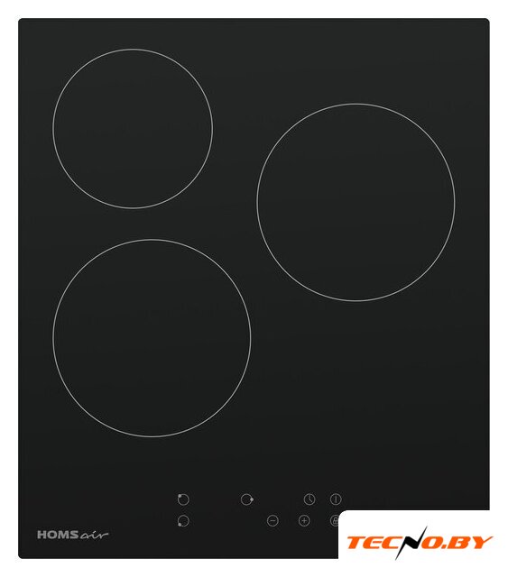 HOMSair HVY43BK оснащена тремя конфорками с технологией HiLight, которые обеспечивают быстрое и равномерное нагревание. Две конфорки диаметром 200 мм обладают мощностью по 1800 Вт каждая, и одна конфорка диаметром 165 мм имеет мощность 1200 Вт. Общая мощность варочной панели достигает 4800 Вт с девятью уровнями регулирования мощности, что позволяет выбирать наиболее подходящий режим для приготовления различных блюд.
