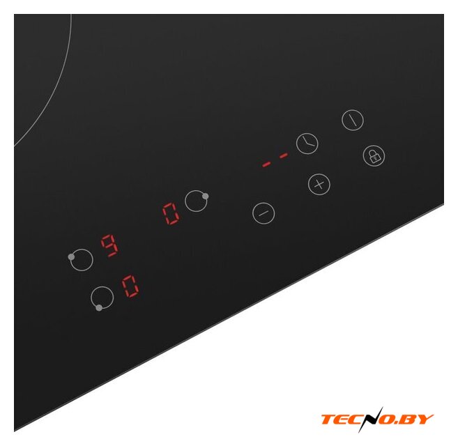 Для удобства пользователей сенсорное управление расположено на передней части панели. Кнопки -/+ позволяют легко регулировать мощность конфорок. Панель также оснащена электронным таймером, который помогает контролировать процесс приготовления и избежать переготовления блюд.